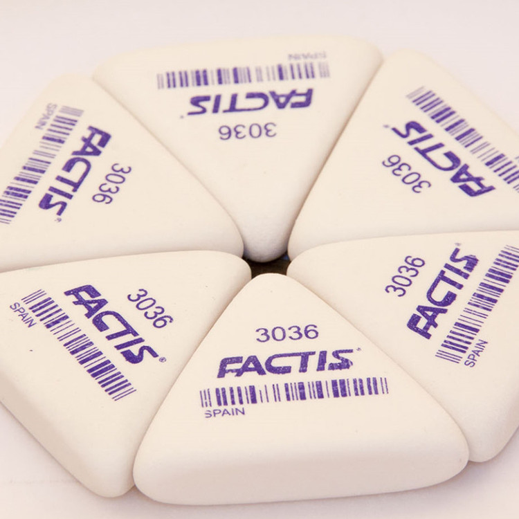 مثلث نزدیک ترین شکل به ساختار دست انسان است، به همین دلیل است که استفاده از نوشتافزارهای مثلث شکلی مانند پاککن «فکتیس» (Factis) دست را خسته نمیکند. این پاککن بهخوبی اشتباهات نوشتاری شما را از بین برده و اطراف محل کار شما را کثیف نمیکند. پاککن فکتیس به شکل یک مثلث متساویالاضلاع است. این پاککن بهراحتی در بین انگشتان شما قرار گرفته و به همین دلیل در استفادهی طولانیمدت آسیبی به دست شما نمیزند. با این محصول هیچ اثری از اشتباه نوشتاری شما به جا نخواهد ماند تا شما بتوانید درست از همان جایی که اشتباه کردید، نوشتن را دوباره آغاز کنید. میزان پرزی که در اثر کار با این پاککن تولید میشود بسیار کم است. این امر از کثیف شدن دفتر و کتاب یا محیطی که در آن مشغول نوشتن هستید جلوگیری میکند. لذت نوشتن با مداد یا مداد نوکی زمانی دو برابر میشود که یک پاککن خوب هم برای پاک کردن اشتباهاتتان در اختیار داشته باشید. پاککن فکتیس به دلیل قدرت پاککنندگی بالا، شکل مثلثی و تولید حداقل پرز برای کسانی که در طول روز با نوشتن با مداد یا مداد نوکی سروکار دارند، یک انتخاب بسیار مناسب است.