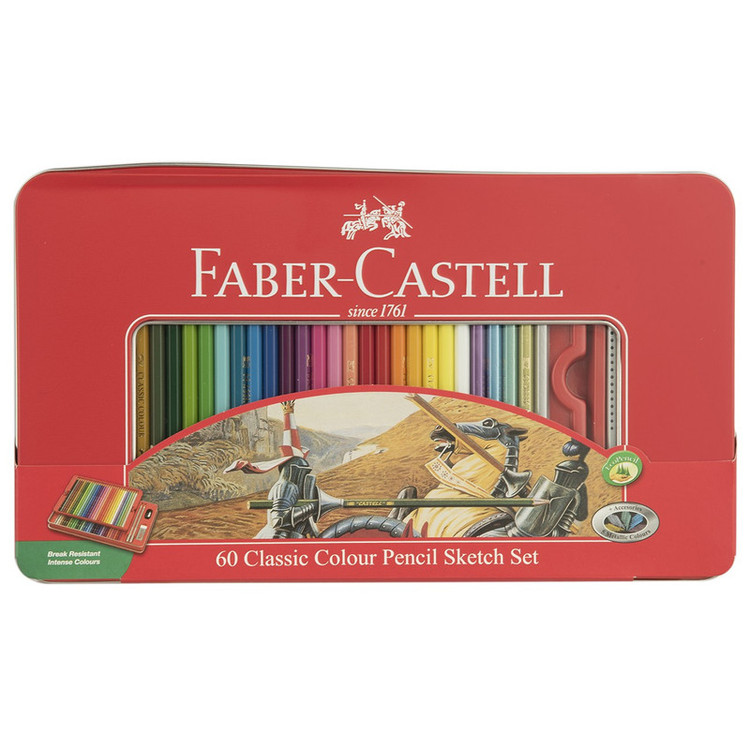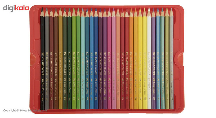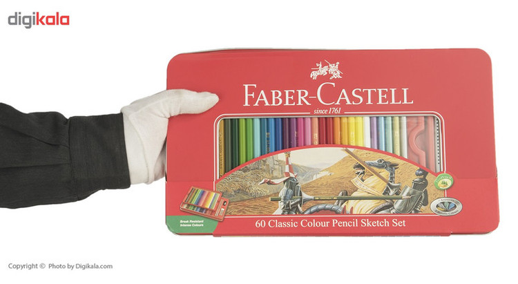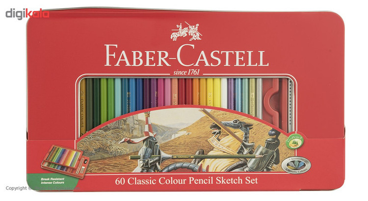 با داشتن مداد رنگی 60 رنگ فابر کاستل مدل Classic برای طراحی و نقاشی همه لوازم را در اختیار خواهید داشت زیرا این مدادرنگی همراه با یک عدد تراش، یک عدد پاکن و دو عدد مداد مشکی مناسب طراحی روانهی بازار شده است. مدادهای مدادرنگی حاضر دارای نوک مقاوم در برابر شکستن و همچینین دارای رنگدانههای غلیظ با قابلیت پوششدهی بالا است. نوکی با ضخامت 3.3 میلیمتر، با ردی ضد آب و مقاوم در برابر پخششدن و پاکشدن مهر تاییدی بر کیفیت بالای این مدادرنگی و مناسب کودکان و هنرمندان تازه کار است. یکی از مداد رنگیهای مشهور در دنیا، مداد رنگی کلاسیک فابر کاستل است. بدنهی این مدادرنگی به کلاسیکترین شکل ممکن مداد – یعنی ششضلعی- طراحی و از جنس چوب ساخته شده است. این بدنهی شش ضلعی به مداد شکل ارگونومیکی داده است که در استفادهی طولانی مدت دست را خسته نمیکند و به آن آسیبی نمیزند. شش ضلعی بودن بدنه از لیز خوردن مداد در دست یا روی میز هم جلوگیری میکند.