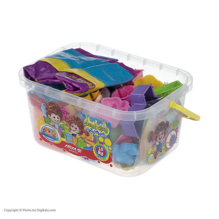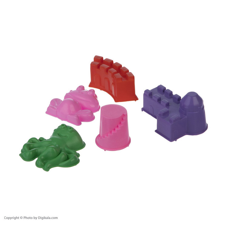 -3 رنگ خمیرشنی 500 گرمی -1 عدد بیلچه -1عدد چنگ -6 عدد قالب قلعه کوچک -6 عدد قالب قلعه بزرگ -8 عدد قالب حیوانات دریایی -5 ابزار خمیر شنی -1عدد میز بادی